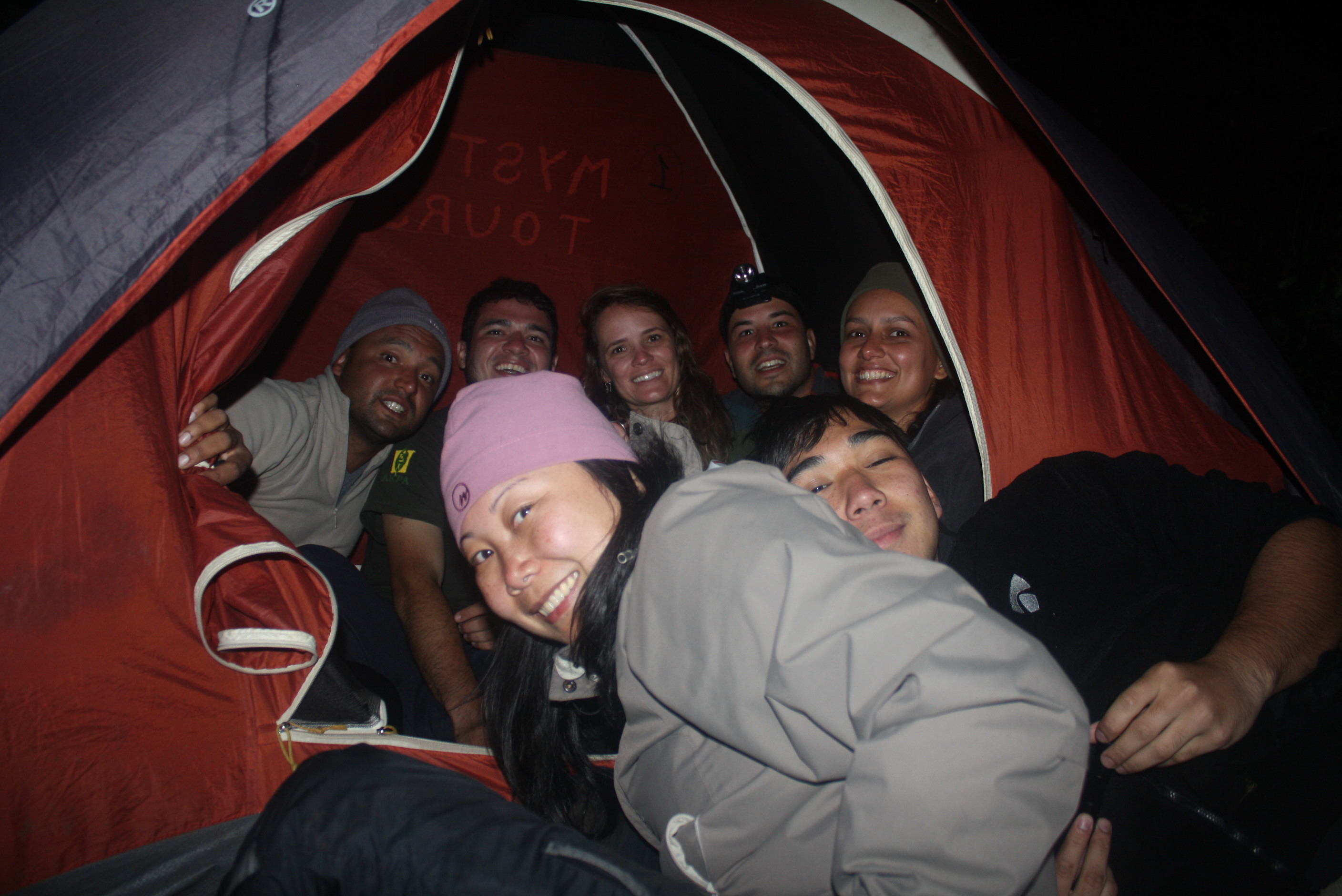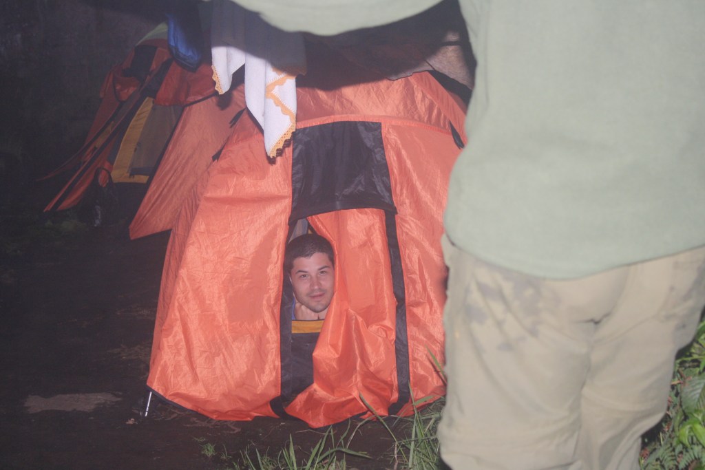 Uma vez acampados lá em cima, íamos passar 3 noites. Poderíamos manter o mesmo acampamento ou ir para outros lugares, dependendo do que preferiríamos explorar. Optamos por permanecer no mesmo local de acampamento por todas as noites. Uma coisa curiosa a respeito dessa viagem: para usar o banheiro, nos acampamentos são feitos buracos e depois tampados. No topo isso não é possível por ser tudo de rocha, então é necessário usar sacos (adaptados numa cadeira de plástico furada), juntar cal e fechar o saco, que vai ser levado embora pelos carregadores. Nada pode ser deixado lá em cima…