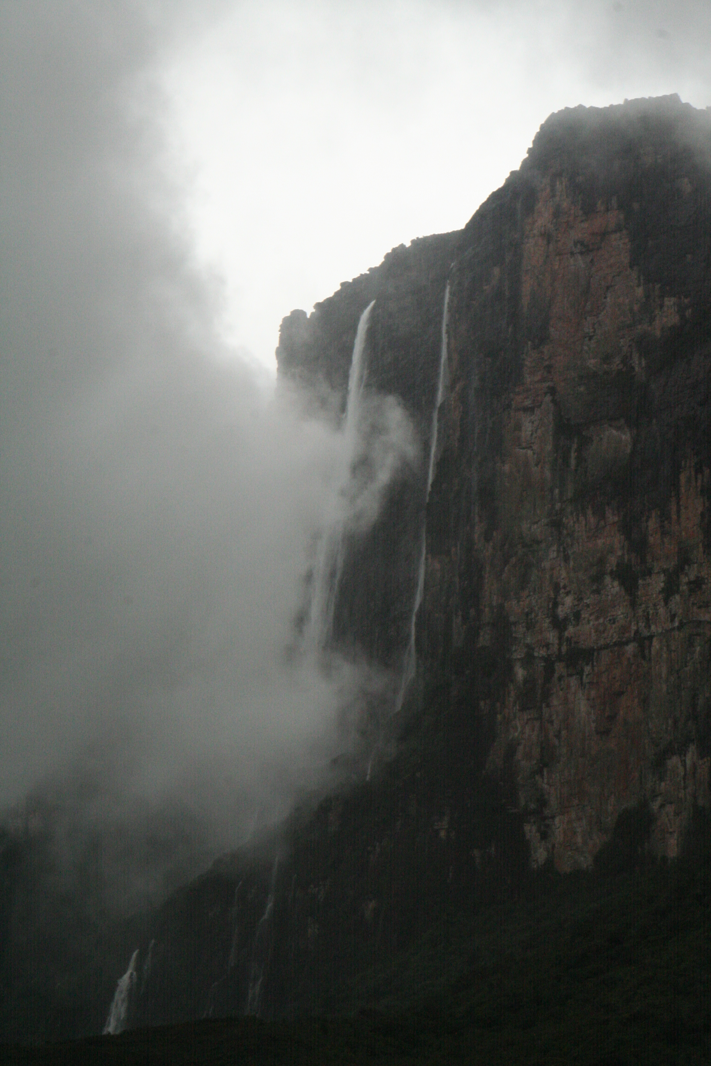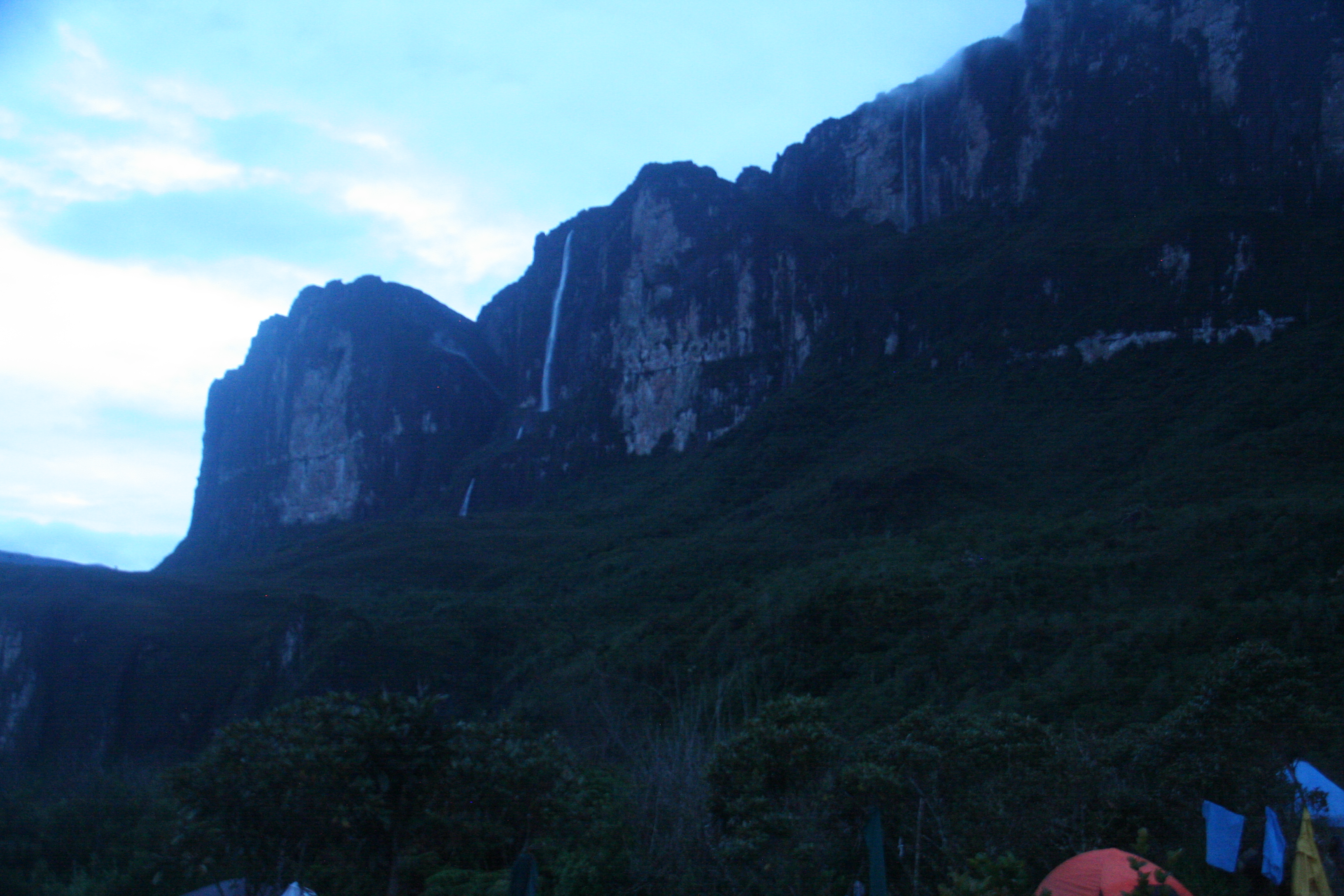 Ao terceiro dia de expedição, finalmente era a hora de subir a montanha. O paredão de centenas de metros, para o qual ficamos olhando de longe por dois dias, estava ali pertinho. O dia praticamente inteiro seria de subida (sem escalada) pela trilha na encosta da montanha. Uma coisa que nos chamava a atenção era a frequência com que a neblina cobria e descobria a montanha, e ao longo daquele dia (e dos próximos) sentiríamos aquilo bem de perto.