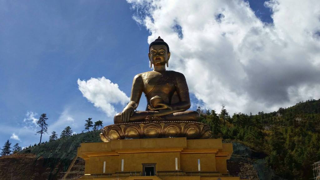 E assim como nós temos o Cristo Redentor, lá na entrada do vale onde fica a cidade de Thimpu, capital do país, há uma estátua enorme de Buda, no chamado Buddha Point, no alto da montanha de onde se avista a cidade, como que a abençoando. Impossível não fazer o paralelo com o Corcovado.