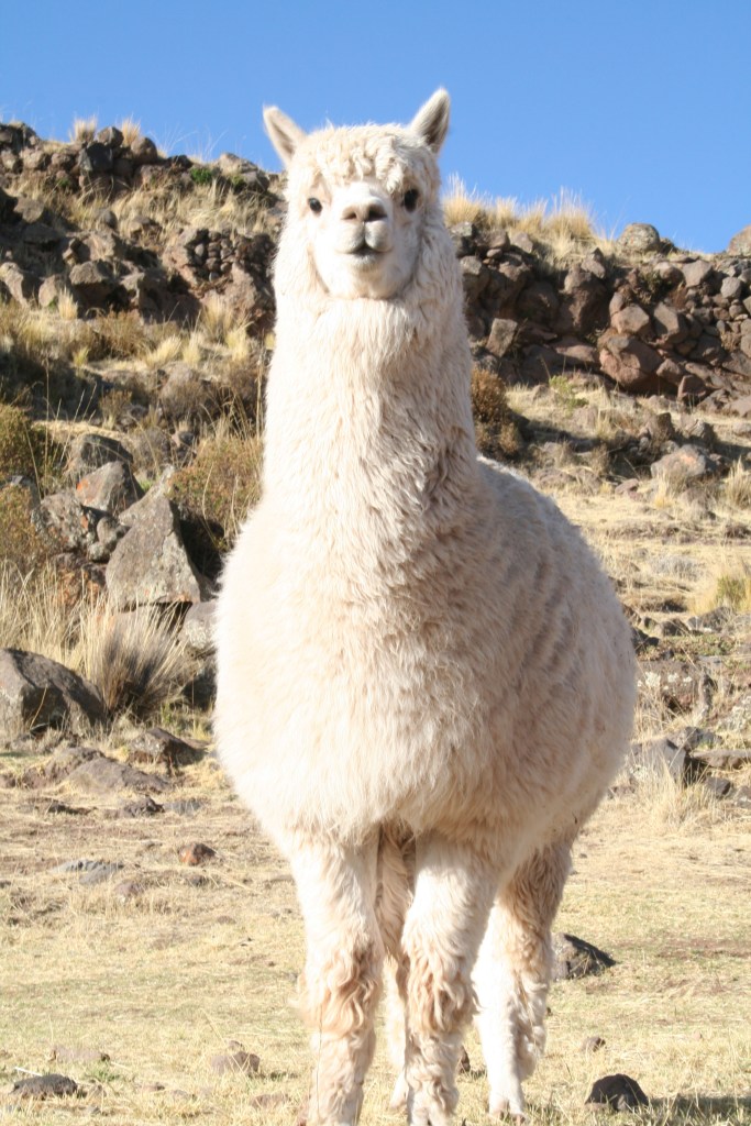 Lhama posando para foto em Sillustani
