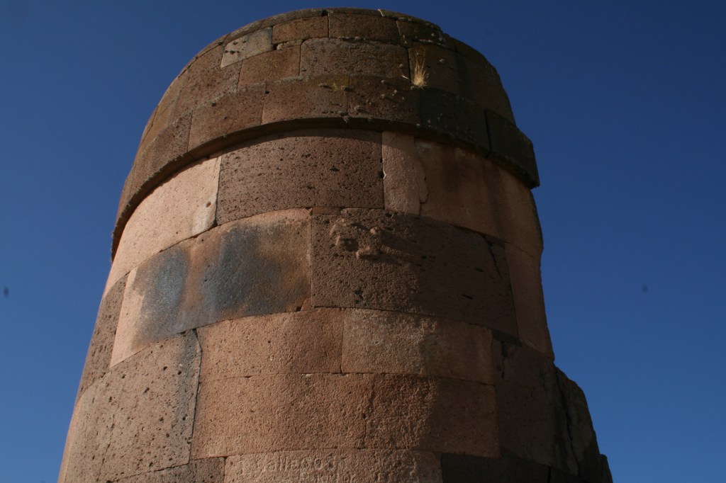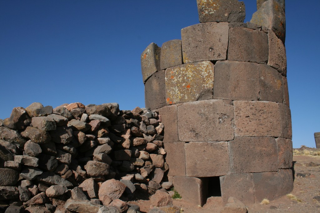 No nosso terceiro dia no Peru, acordamos bem cedo para irmos a Sillustani, um cemitério Inca que fica perto de Puno, no caminho para Cuzco. Lá existem chulpas, que são construções onde eram guardados os mortos. As chulpas são construções cilíndricas, com uns 6, 8 metros de altura, e com uma entrada de mais ou menos 80 cm de altura, sempre virada para o nascer do Sol. E a porta ficava aberta, para que os familiares e amigos pudessem visitar seus mortos… as múmias eram colocadas em posição fetal na parte de dentro da chulpa, nas paredes. Uma coisa muito interessante que notamos lá é que além das chulpas Incas, haviam também em Sillustani chulpas de uma outra civilização que viveu ali antes de ser conquistada pelos Incas. As construções eram mais toscas, sem acabamento ou trabalho fino nas rochas como as dos Incas. Mas o interessante disso é mostrar que quando os Incas conquistavam um povo, não faziam uma conquista predatória, mas sim respeitavam a cultura do povo conquistado, absorvendo para a sua própria o que fosse interessante, e passando sua cultura e tecnologia para os povos conquistados. Uma forma bem mais inteligente de se colonizar um povo do que os católicos europeus fizeram, sem admitir que poderiam aprender algo com os “selvagens” que encontraram na América.