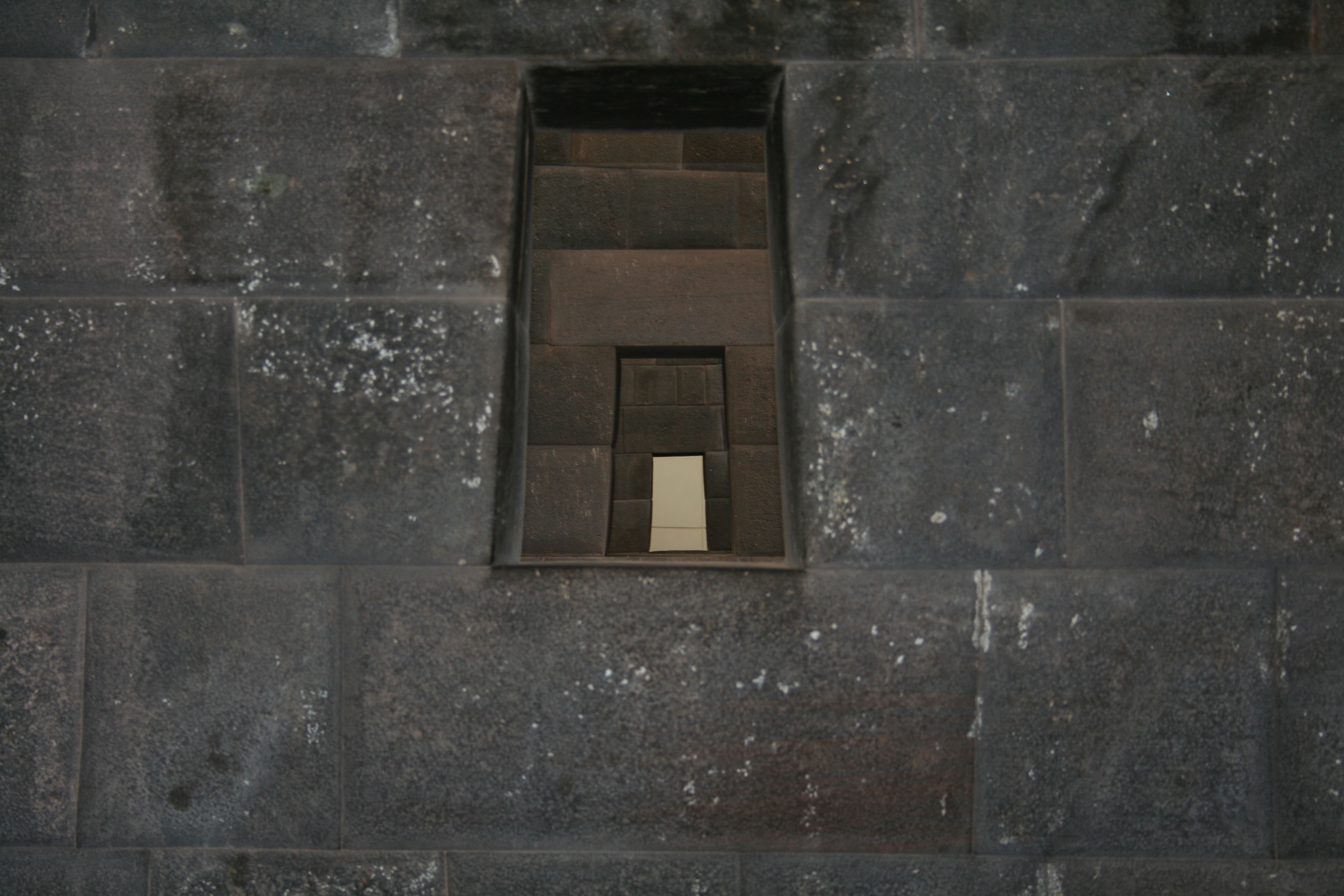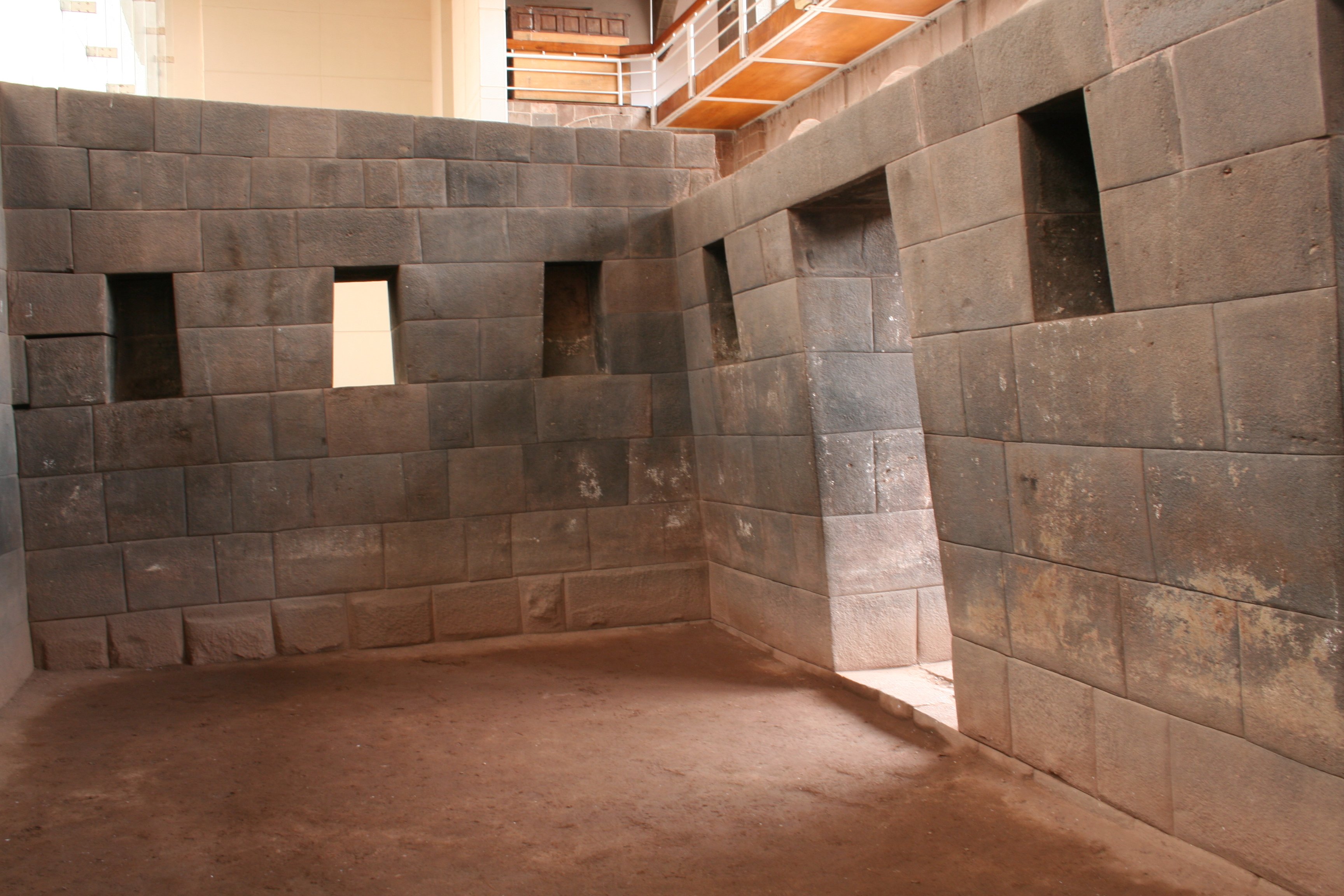 Janelas perfeitamente alinhadas no CoricanchaParedes trapezoidais no Coricancha
