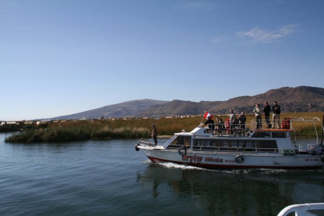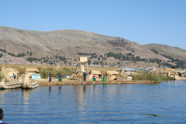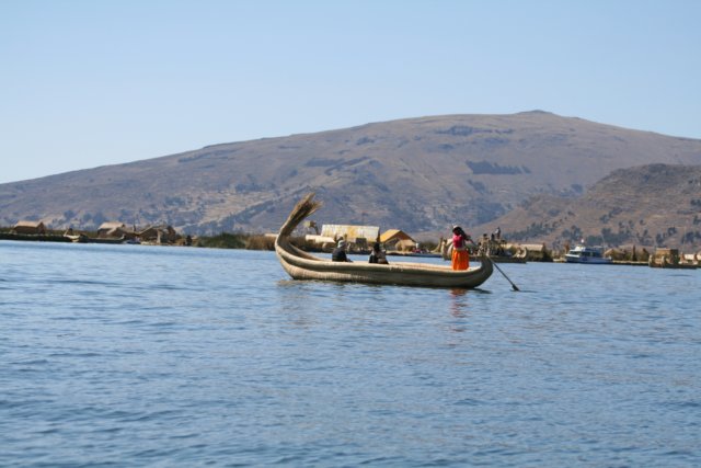 No dia seguinte em Puno, fomos fazer nosso passeio de barco no Lago Titicaca, os barcos que levavam os turistas eram como um ônibus de excursão: muitos turistas, guia com microfone explicando as coisas, serviço de bordo e tudo o mais. No passeio conhecemos as ilhas flutuantes de Uros, que são ilhas feitas com totora (uma espécie de junco que cresce no lago). Os habitantes de lá constroem casas e barcos também feitos de totora, e ficam oferecendo seus artesanatos aos turistas. Conhecemos as casas e andamos em um dos barcos deles. Depois partimos para uma ilha mais afastada, a ilha de Taquile, onde vive uma comunidade socialista ainda hoje, com decisões sendo tomadas pela comunidade e que vivem praticamente da venda de artesanatos também. Almoçamos em Taquile, em um ponto alto da ilha com uma bela vista do lago(que parece um mar, pois não se consegue enxergar o horizonte). No começo da noite, fomos ao já citado Mirante do Condor.