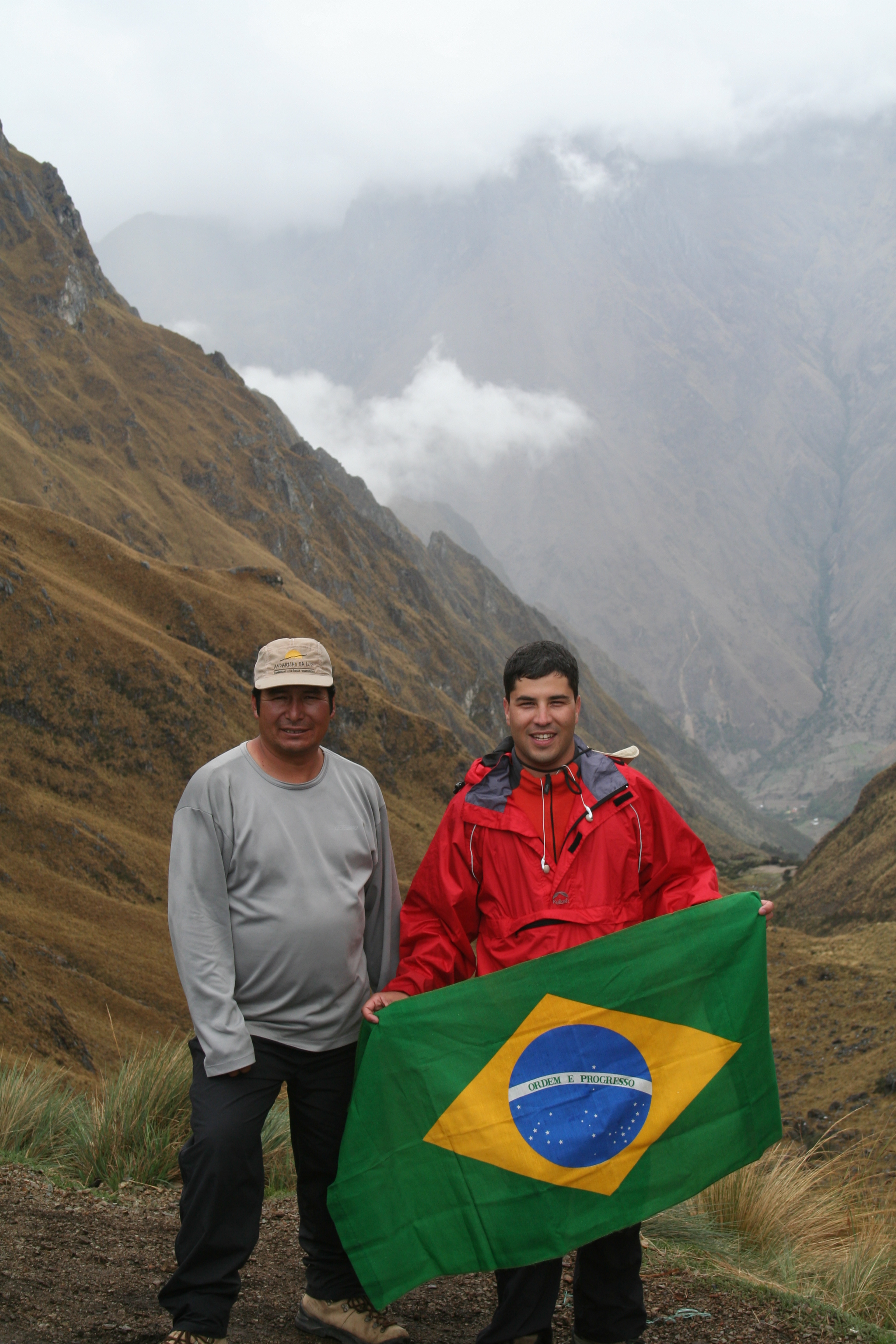 Jim levava essa bandeira para tirar fotos com os brasileiros no Warmiwañuska