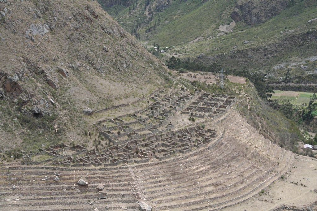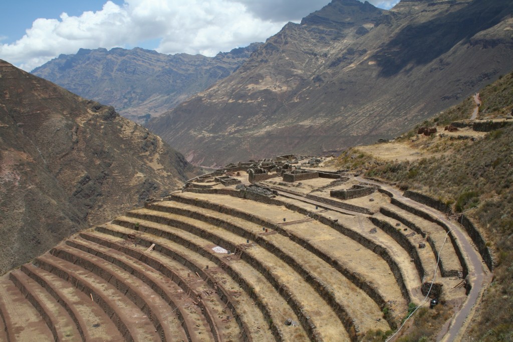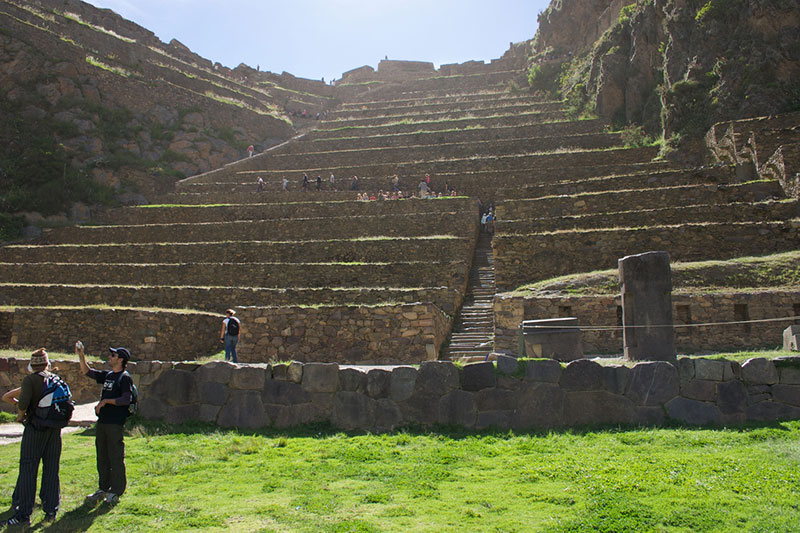 Em Pisac e em Ollantaytambo vimos belos exemplos de terraceamento, que é uma técnica de plantação que criam “escadas” ao longo da encosta para se colocar as plantações. Isso diminui a erosão por chuvas, pois dificulta a àgua a descer com muita velocidade, além de possibilitar plantios em regiões – como aquelas onde os Incas viviam – onde há falta de terrenos planos. Além disso, eram posicionadas de forma a se beneficiar ao máximo do Sol, e feitas de maneira calculada de forma a serem criados microclimas particulares que permitiam o cultivo de diferentes plantações em áreas mais altas ou mais baixas, de acordo com a necessidade de cada planta.