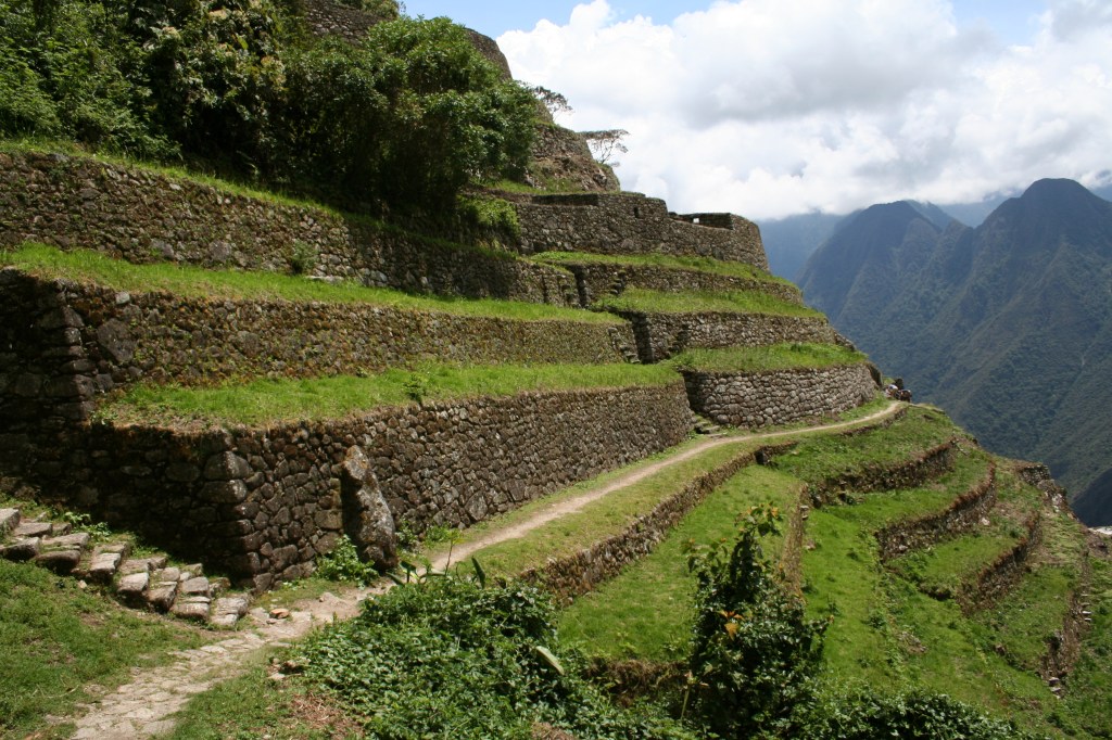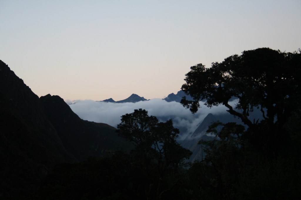 No nosso último acampamento em Puyupatamarca tirei a primeira foto da Wayna Picchu, ainda que bem de longe. Ao acordarmos no dia seguinte, já fomos caminhando para passar por Wyñaywayna, e depois, finalmente, a porta do Sol que nos descortinaria Macchu Picchu.