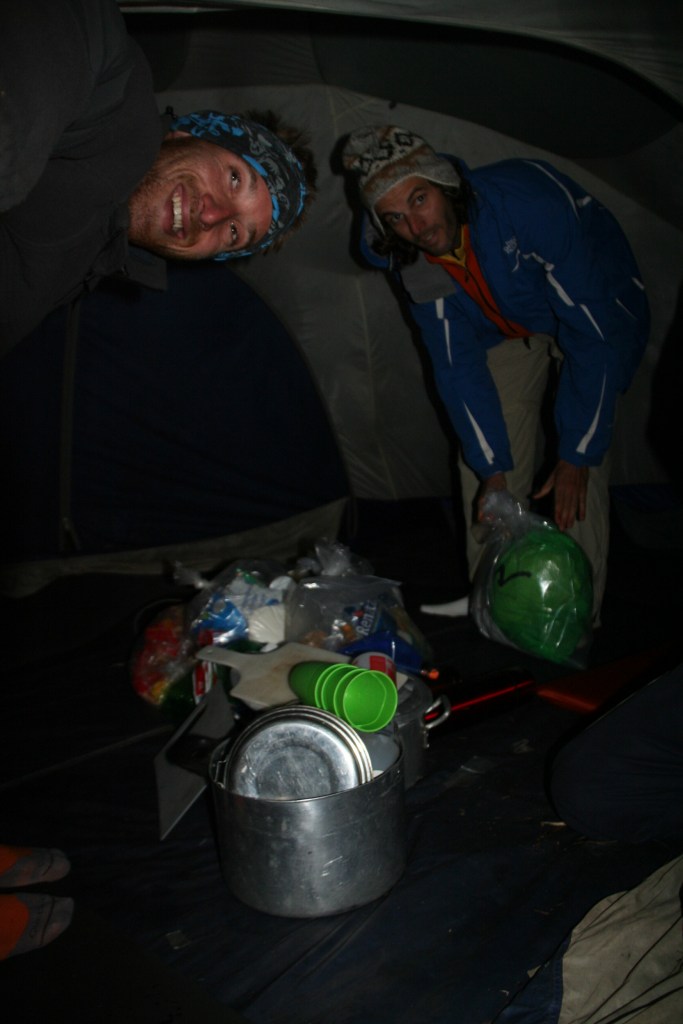 Nosso acampamento da primeira noite, no “Maracanã”