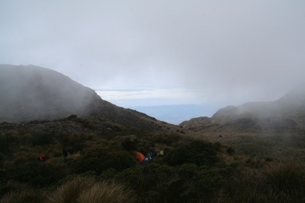Eu tenho poucas fotos dessa trilha, porque a partir da primeira noite passada no alto da montanha, o tempo ficou bastante ruim, com muito vento e um pouco de chuva, além do frio que já era esperado lá em cima. Na época as fotos eu tirava com uma câmera DSLR, que não suportava bem esse tipo de ambiente. Hoje em dia, com câmeras de celular, fica bem mais fácil…